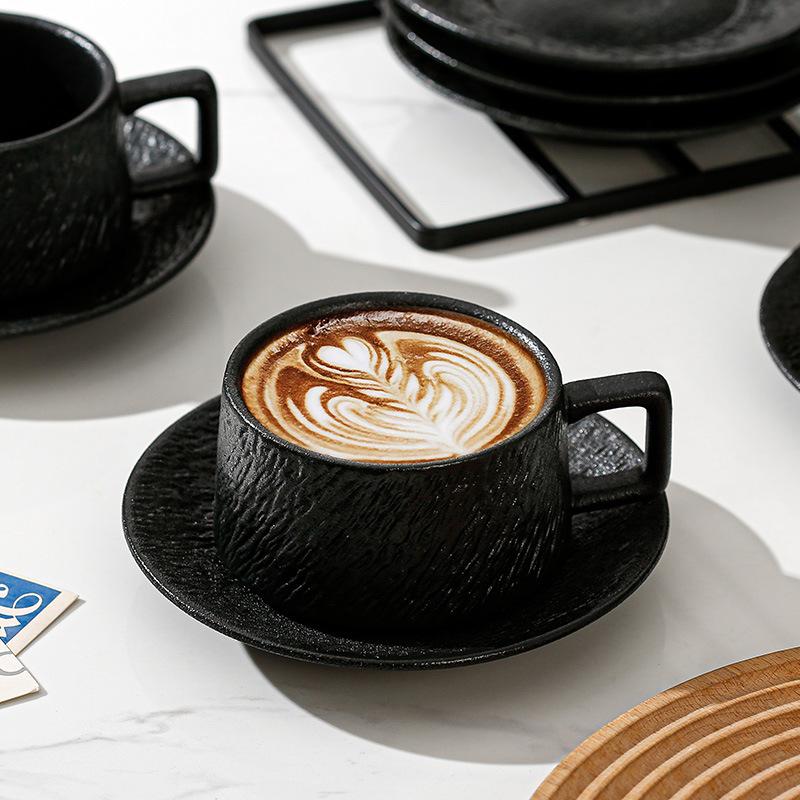 Frosted Stone Pattern Coffee Cup And Saucer Set, Teacup Hanging Ear Coffee Cup, Simple Solid Color Home Breakfast Cup, Afternoon Teacup