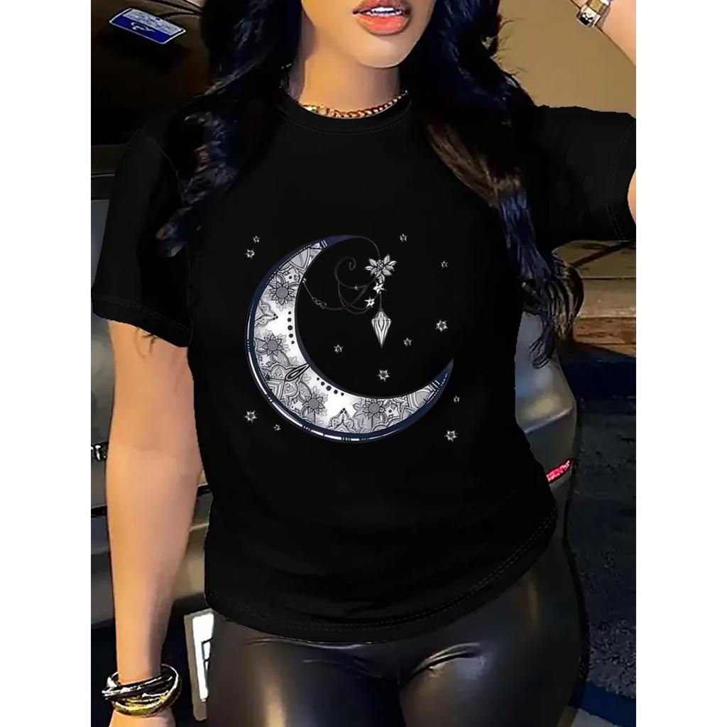 Summer Women's Front-Printed Short-Sleeved T-Shirt, Comfortable and Breathable Fabric, Casual Sports Style, Suitable for Spring and Summer