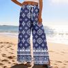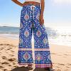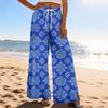 Women Summer Boho Palazzo Pants High Waist Wide Leg Printing Casual Trousers With Pockets