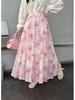 חצאית פרחונית סגולה בסגנון קוריאני: עיצוב יוקרתי, מפחית גיל, מותן אסוף