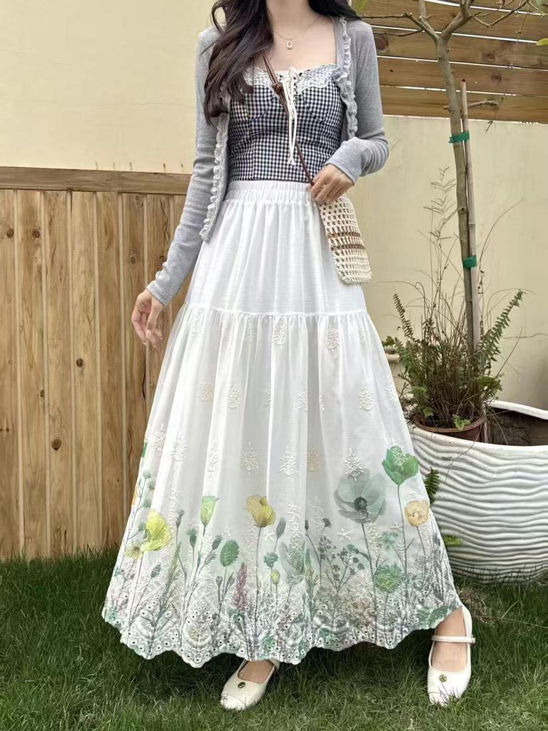 Women's Winter Embroidered High-Waist A-line Skirt with Hollow Print