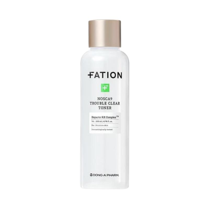 FATION Nosca9 Trouble Clear Toner is a clarifying toner designed to calm acne-prone and troubled skin while balancing excess sebum. Formulated with skin-soothing and exfoliating ingredients, it helps refine pores and improve uneven texture. The lightweight, refreshing formula absorbs quickly without stickiness, leaving skin clear and comfortably hydrated. Ideal for oily, combination, and blemish-prone skin types.