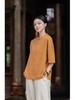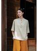 Women's Short-Sleeve Retro Frog Button Linen-Cotton Zen Top