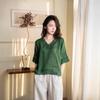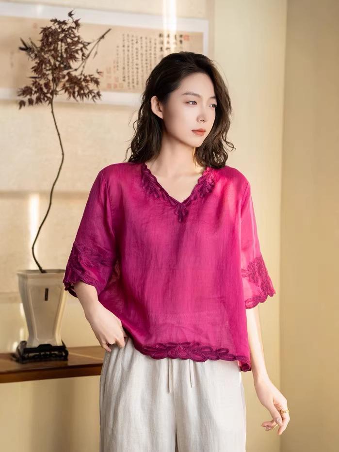 Retro Artistic Linen Embroidered V-Neck Women's Five-Sleeve Pullover - 2026 Spring Collection