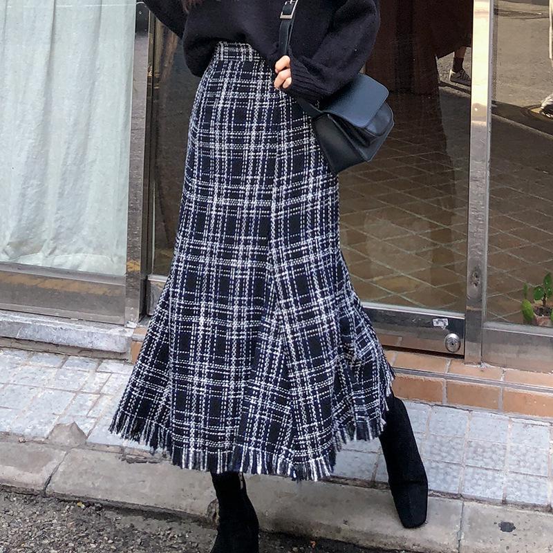 Experience a chic and modern twist on a classic look with this high-waist fringe pencil skirt. Perfect for autumn and winter, it features a slim fit and mid-length design with a pleated umbrella silhouette that adds a touch of sophistication. The skirt is crafted from a comfortable cotton blend and adorned with a stylish plaid pattern, making it a versatile piece for your wardrobe. The fringe decoration adds playful movement, while its sportive style ensures you stay effortlessly trendy on any occasion.