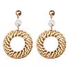 Women Men Retro Style Round Weave Wooden Earrings Beige Eardrop