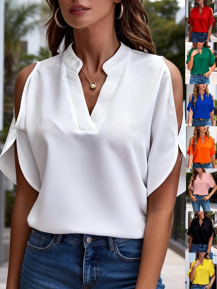 2026 Women's Off-the-Shoulder High-End Solid Color Short Sleeve Loose Shirt Base Layer