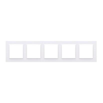 Technical data: SERIES: Simon 10 PRODUCT NAME/TYPE: 5-gang frame COLOR: white RAL (CLOSE): RAL 9003 IP PROTECTION RATING: IP20/IP44 NUMBER OF MODULES: 5 ETIM CLASS: EC000007 Covering frame for electrical installation accessories MATERIAL TYPE: plastic, PC, halogen-free SURFACE PROTECTION: natural SURFACE FINISH: glossy MOUNTING METHOD: snap MOUNTING DIRECTION: horizontal and vertical PRODUCT HEIGHT: 84 mm PRODUCT WIDTH: 368 mm PRODUCT DEPTH: 10.1 mm ** Illustrative photo.