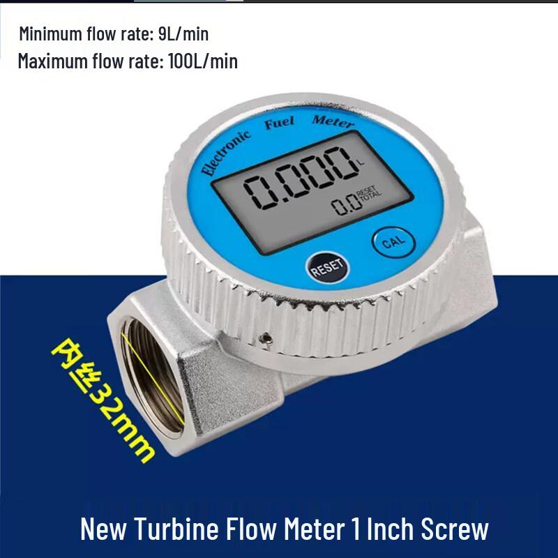 Accurate RSRDDY turbine flow meter designed for measuring diesel and gasoline flow. Features a durable round design with a 1-inch internal thread for easy installation.