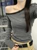 Embrace the essence of autumn with this stylish slim-fit striped off-the-shoulder T-shirt for women. Crafted from high-quality polyester, this top offers both comfort and a chic, modern look. Featuring a flattering v-neckline and long sleeves, it's perfect for those crisp fall days. The effortlessly elegant design makes it an ideal choice for day-to-night transitions, adding a hint of spice to your autumn wardrobe.