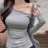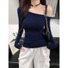 Women's One-Shoulder Long-Sleeve Pleated Base Layer Chic Cropped Top - 2026 Spring/Autumn