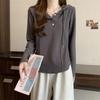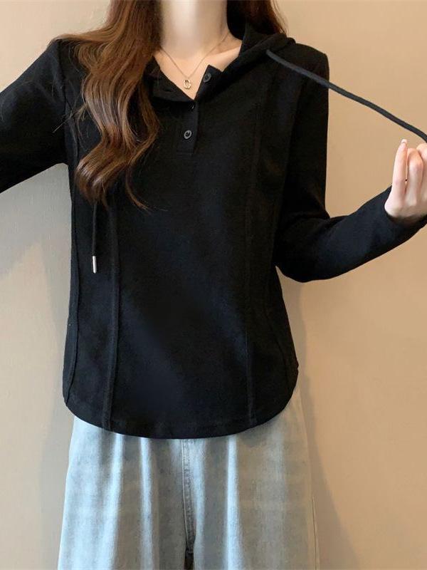 Embrace comfort and style with this Korean-inspired plus size long-sleeve T-shirt, perfect for the autumn and winter seasons. Crafted from soft, high-quality cotton, it offers a cozy, breathable feel. The solid pattern and hooded neckline provide a chic and versatile look, making it a fashionable base layer for any outfit. Designed with a loose fit, it offers a flattering and comfortable option for chubby women seeking both fashion and function.