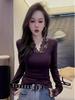 Pure Desire Women's Lace Patchwork V-Neck Long Sleeve Top - 2025