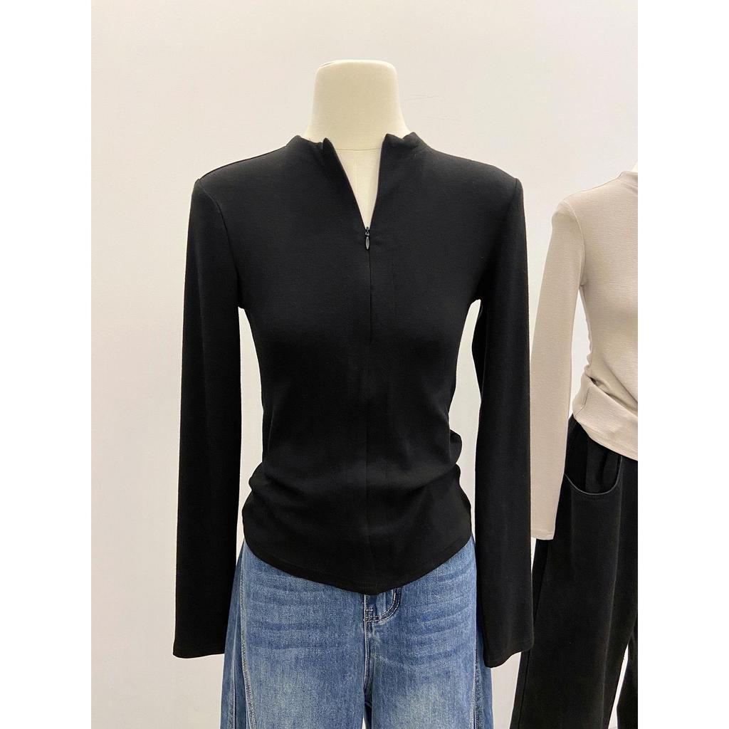 Stay cozy and stylish during the colder months with this elegant long sleeve top. Crafted from soft polyester material, this top features a warm, brushed texture perfect for autumn and winter. The stand-up collar and half-zip design offer a modern touch, while the round neckline and long sleeves ensure comfort and versatility. This piece effortlessly combines warmth with chic style, making it a must-have addition to your seasonal wardrobe.