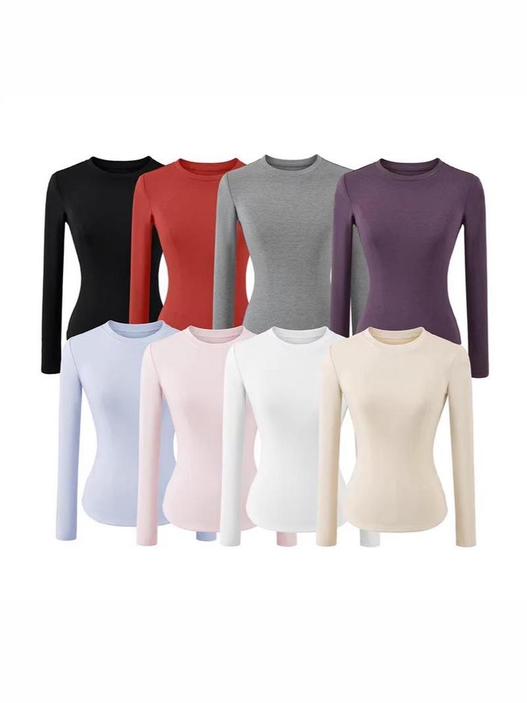 Spicy Girl Versatile Long-Sleeve Women's T-Shirt - Spring/Autumn, Comfortable Base Layer, Round Neck, Slim Fit