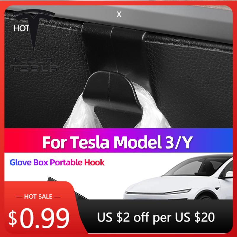 Car Sticker For Tesla Model 3 Y Juniper Highland 2020-2026 Passenger Glove Box Hook Front Spare Box Hook Storage Modification Ac