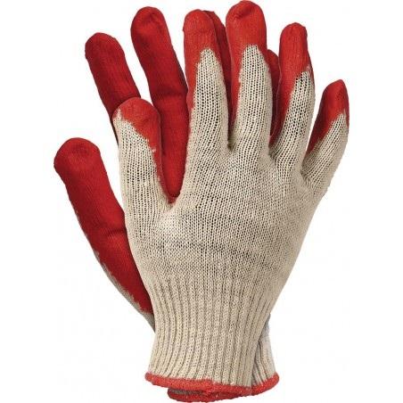 Technical data: Product code: RUC 459 Size: 9 Knitted gloves with rubber coating. Made of a cotton-polyester blend With a drawstring closure intended for light work that does not require professional use do not wash, single-use product Not PPE **