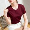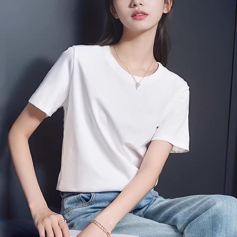 Women's High-End White Mercerized Cotton T-Shirt - Summer 2026 Pure Cotton Short Sleeve, Round Neck, Loose Fit, Slimming Top