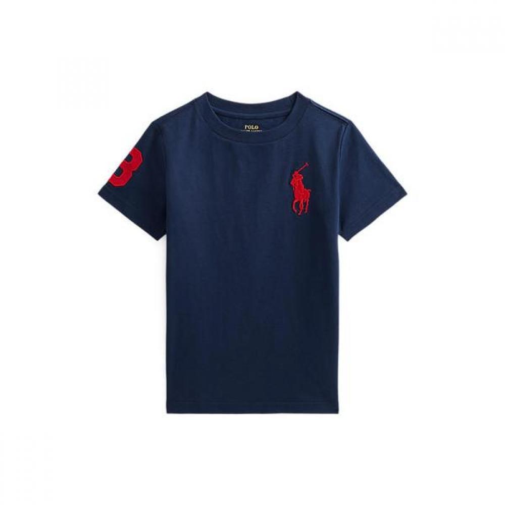 The Polo Kids Big Pony Cotton Jersey Tee for boys aged 2-7 features the iconic big pony and the twill '3' patch representing one of the best players on the polo team. It has a striking big pony embroidery on the left chest, short sleeves, and a crew neck for a comfortable fit and stylish look. Made from 100% cotton, this tee is machine washable.