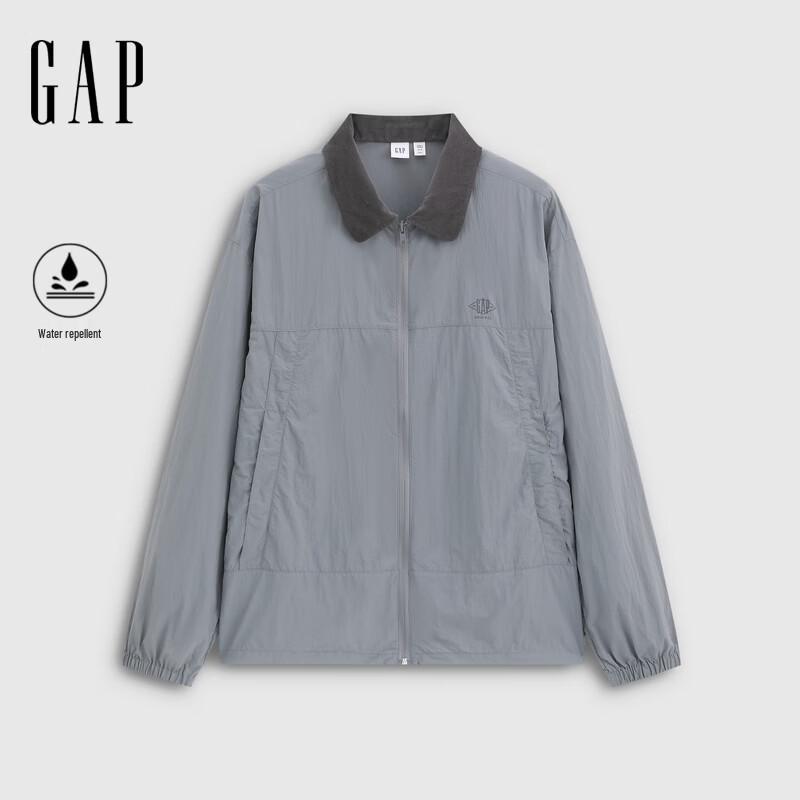 This GAP Men's jacket features a water-repellent finish, a classic lapel, and a logo print. Designed for comfort with a loose fit, it offers sun protection, making it ideal for daily wear in spring and autumn.