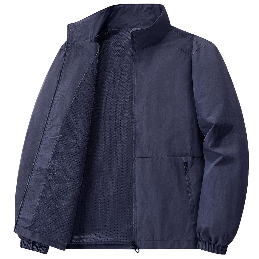 [Classic men's jacket] This is a light jacket with the latest fashion design, featuring a stand-up collar and elastic cuffs and hem for a snug fit, making it both fashionable and comfortable.