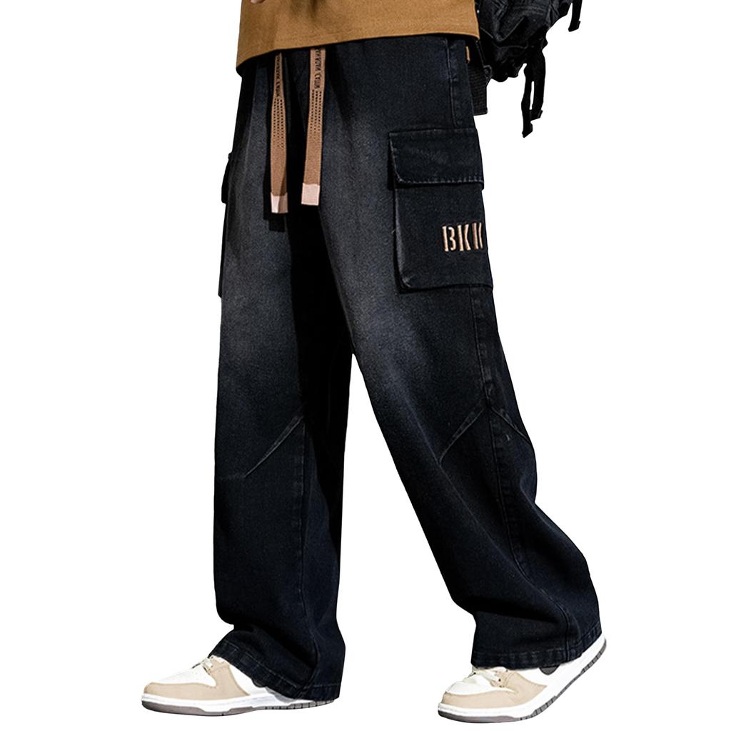 Men's Oversized Denim Cargo Pants. Material: 60% Cotton, 40% Polyester. Sizes: M, L, XL, 2XL, 3XL. Colors: Black, Blue. ★Made of durable, sturdy denim, these pants are comfortable to wear thanks to the soft cotton material. The medium-weight construction makes them suitable for year-round wear. The relaxed silhouette creates a flattering, leg-lengthening effect without any bulk. ★The loose, straight silhouette creates a stylish, cohesive look. The slightly wide fit creates a relaxed, mature vibe. ★Simply incorporate these pants into your everyday outfit for a trendy look. Pair them with an oversized T-shirt, long-sleeved T-shirt, plaid shirt, or hoodie for a trendy look. Tuck in your top and throw on a jacket or coat for a stylish look. ★Suitable for a wide range of people, from those in their 20s, 30s, 40s, and 50s. It can be worn as a casual piece for a neat style, or as a functional piece for leisure activities.
