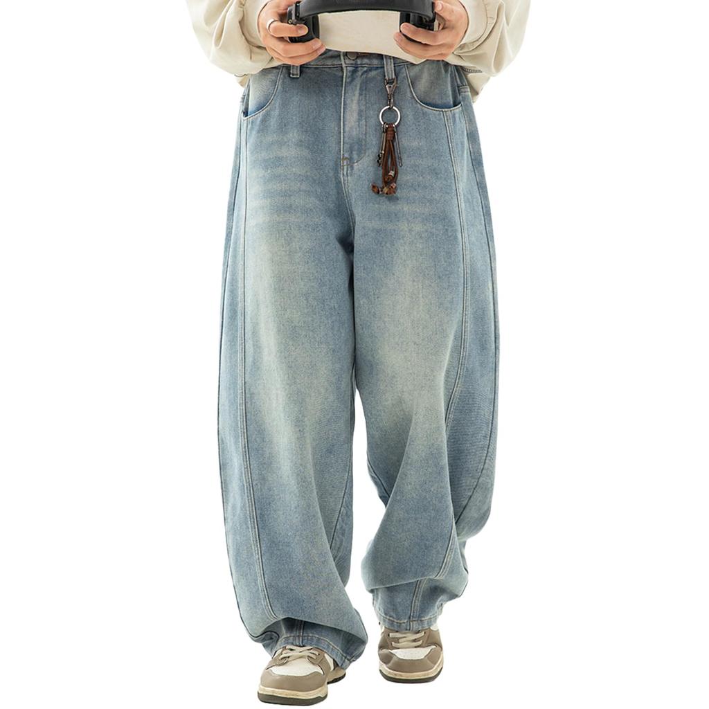 These elegant jeans have a relaxed, oversized silhouette and a casual American casual feel. Perfect for anyone who loves wide-leg pants, these pants are a must-have! Their timeless design means you'll never get bored of them, making them a versatile piece you can wear year-round. Pair them loosely with an oversized T-shirt, long-sleeved T-shirt, plaid shirt, or hoodie for a trendy look. Tuck in a top and layer it with a jacket or coat for a stylish look. These versatile jeans are perfect for everyday wear, like commuting to school, amusement parks, sports, BBQs, and gardening, as well as for hiking, field trips, and other outdoor activities, even for business trips like commuting to work. Suitable for a wide range of ages, from those in their 20s to those in their 40s.