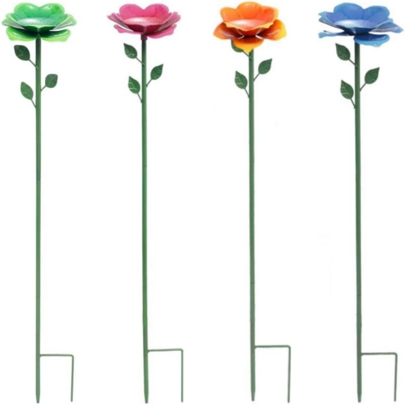 4x Bee Watering Station Metal Flower Stakes Butterfly Bath Bowl Water Feeder