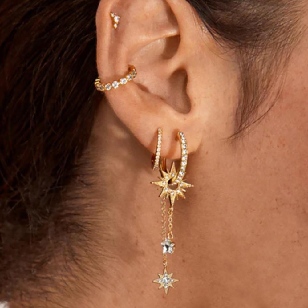 Vintage Stainless Steel Cubic Zirconia Sun Star Dangle Earrings Punk Rock Long Chain Huggies Earring Cartilage Piercing Jewelry