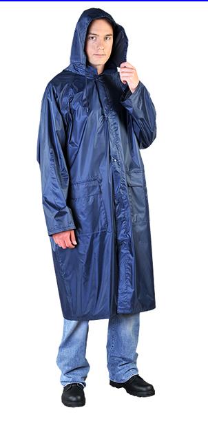 Raincoat with hood. - 30% PVC, 70% polyester - in two fastening versions: fastened with a zipper and additional snaps (basic version), fastened with snaps (P-30 version) - hood zipped in the collar, tightened with drawstrings - two pockets concealed by pleats - sleeves fastened with snaps, allowing for width adjustment and excellent protection against rain - seams additionally taped on the inside with tapes to prevent water from getting in - ventilation system on the back - packed in a bag that can be used to transport other items