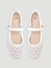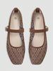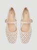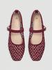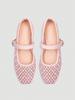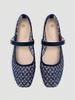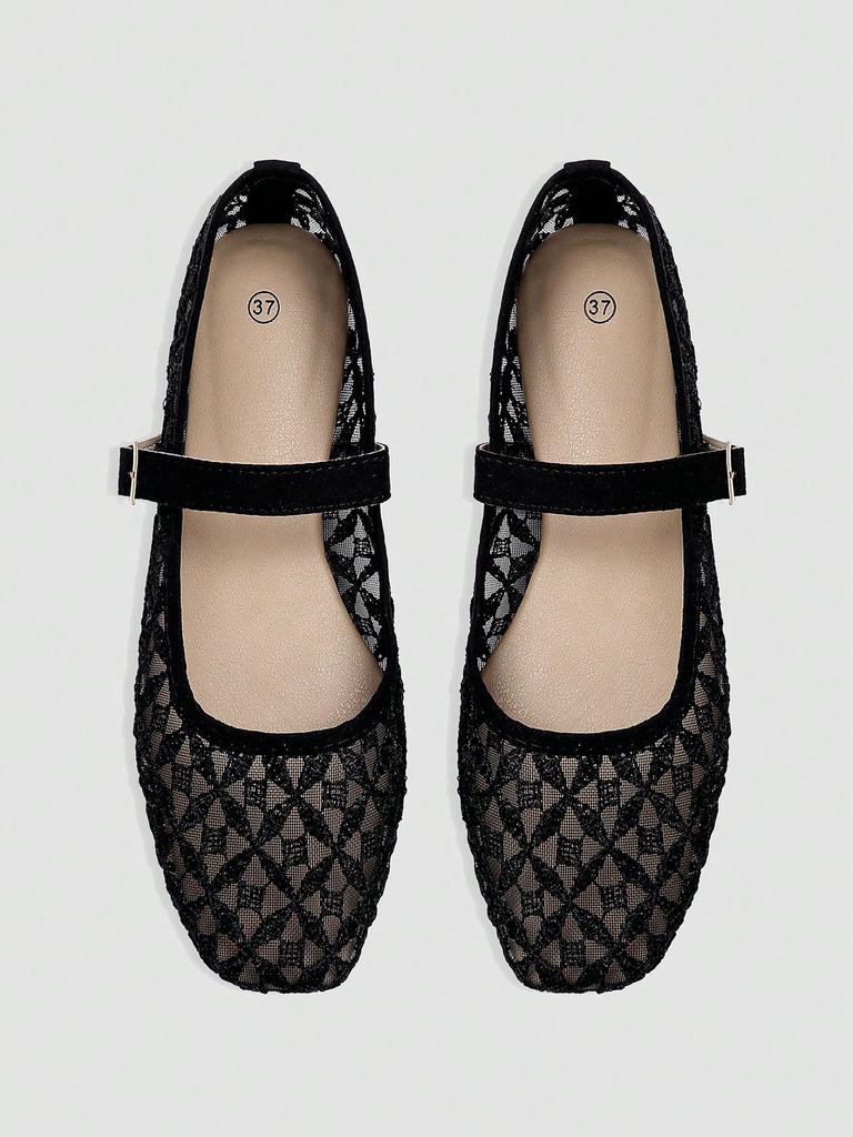Women's Black Square Toe Ballet Mary Jane Flats with Cross Pattern Embroidery Detail and Black Buckle Strap