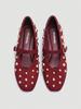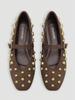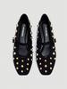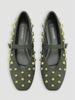 Black Mary Jane Flats, Silver Rivet Decor One-Strap Buckle, Retro Elegant Shoes