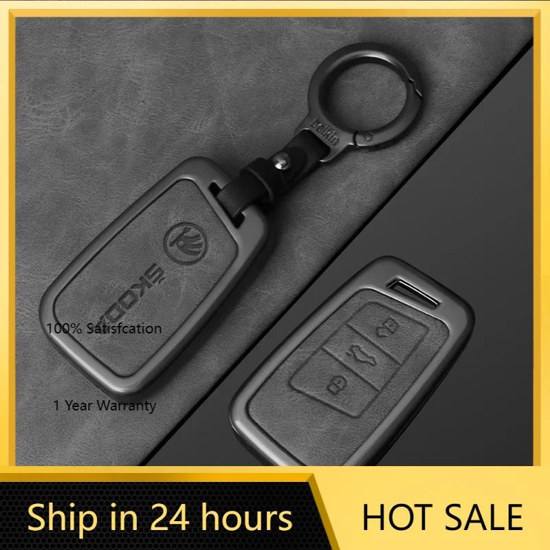 Car Sticker 2025 Hot Leather Zinc Alloy Car Smart Remote Key Case Full Cover Protector Shell Fob for Skoda Kodiaq Superb A7 Auto