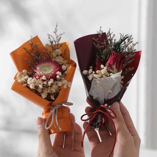 Mini Dried Flower Bouquet Dry Babysbreath Rose Decoration Small Floral Bouquet Romantic Valentine’s Day Wedding Birthday Gift Party Favors