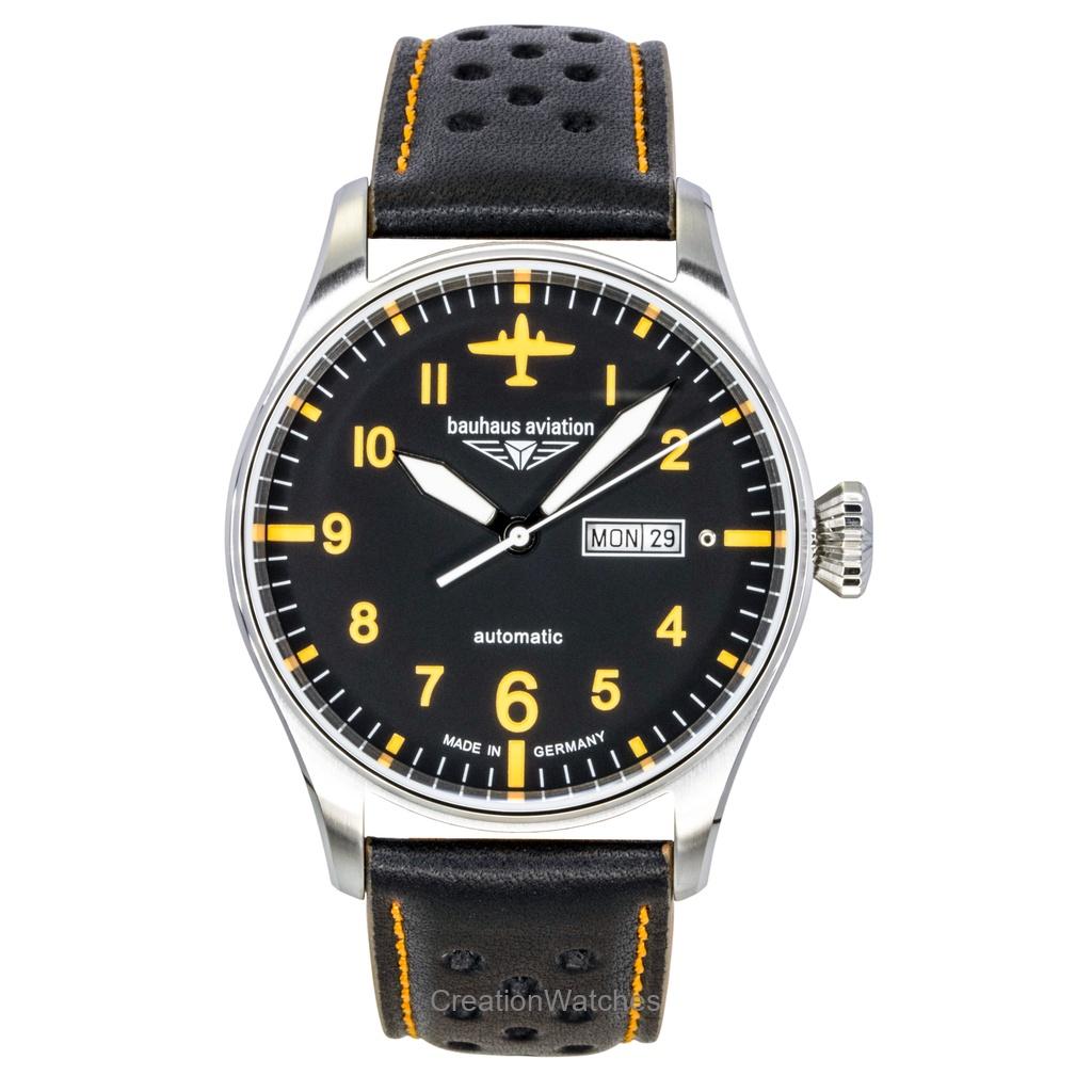 Bauhaus Aviation Leather Strap Black Dial Automatic 27665 Men's Watch
