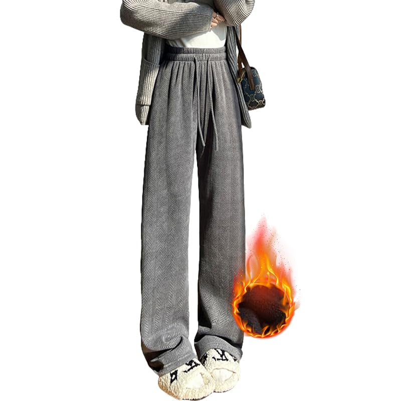FEISEDY Warm Loose Plus Korean Adjustable A8258 Women's Fleece-Lined Pants, Cotton, Fit, Sizes, Style, Sports, Commuting, Casual, Warm, Waist, Thick,