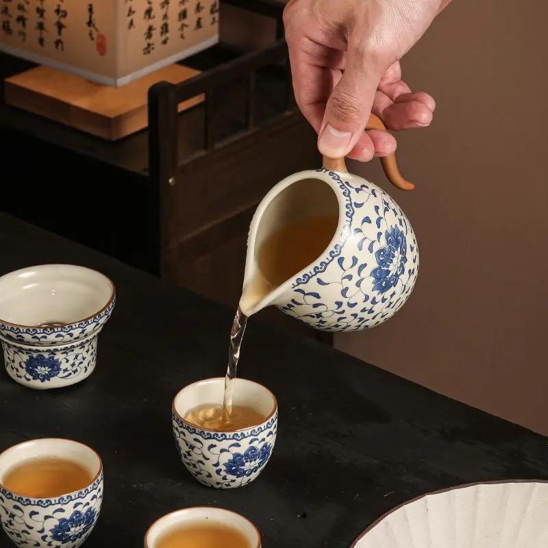 Luxury Handmade Ceramic Teapot Gong Dao Bei Blue Floral Porcelain Tea Pitcher for Chinese Tea Ceremony Collection