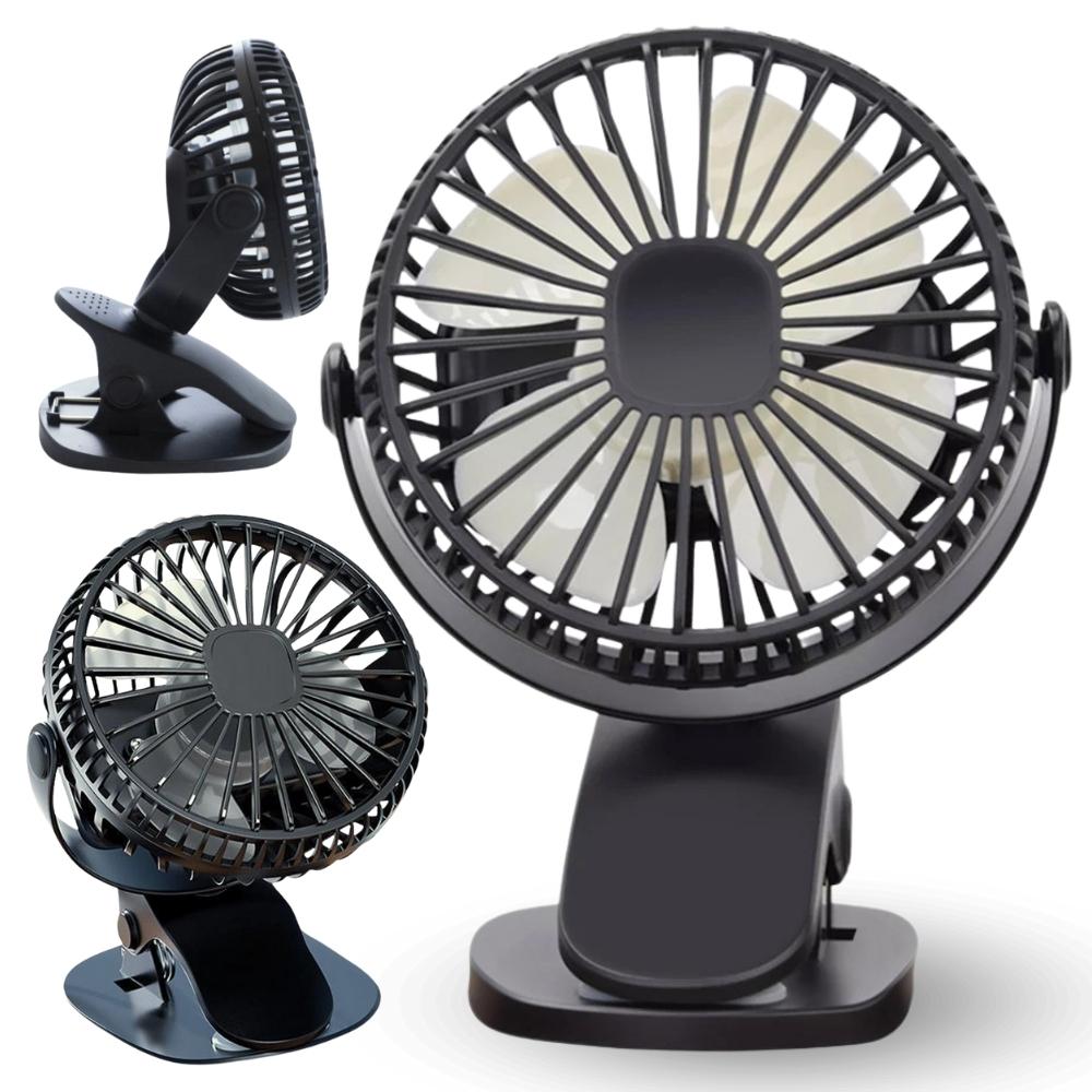 Fan with clip, mini fan, USB charging, mobile, black, desk