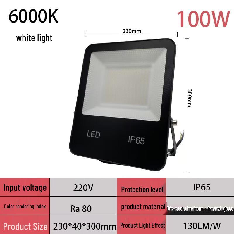 Illuminate large outdoor areas with the OEING 100W High Brightness LED Floodlight. Designed for powerful and reliable outdoor lighting, it features a waterproof construction, making it perfect for stadiums, roads, and general area projection.