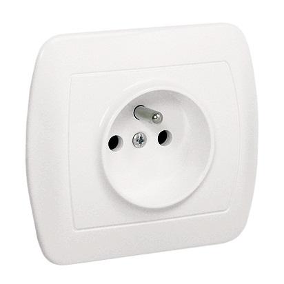 Technical data: Series: Simon Akord Product name/Type: Single socket with grounding RAL (similar): RAL 9003 Rated current: 16A Rated voltage: 250V Connection type/terminal type: Screw terminals IP protection rating: IP20 ETIM Class: EC000125 Socket Type of material: Plastic, PC, halogen-free Mounting method [ETIM]: Flush mounting Product height: 80.5mm Product width: 90mm Product depth: 37.5mm Built-in depth: 25.5mm Quantity per collective package: 10 Unit weight: 0.06048kg Single socket with grounding, flush-mounted. A connector that is generally part of an electrical installation, used to connect electrical receivers to it. ** Illustrative photo.