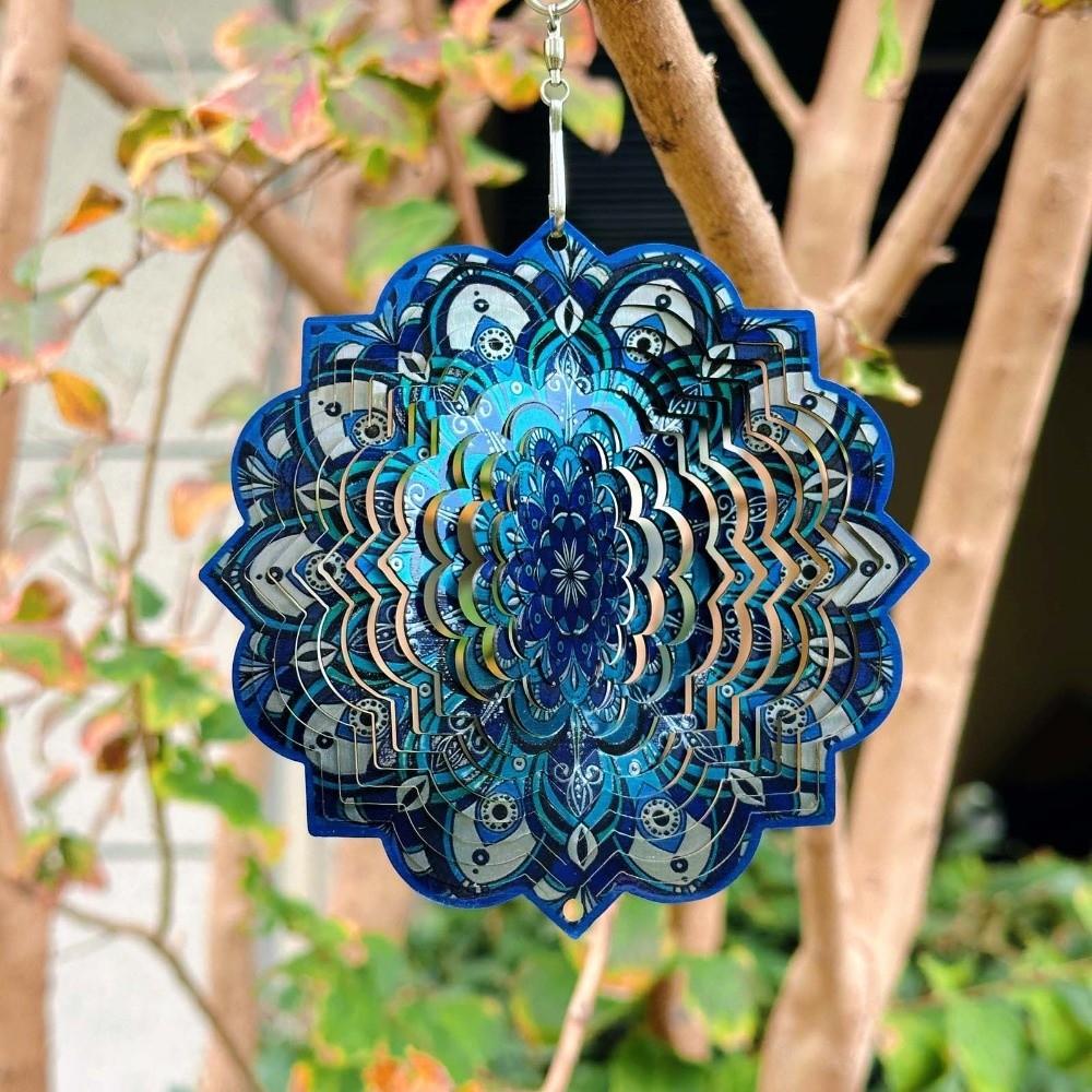 Flower Mandala Wind Chime Butterfly Wind Spinner Creative Rotating Pendant Terrace Decor