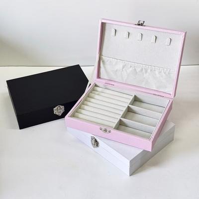 קופסת תכשיטים מעור יוקרה קלה קופסת אחסון לעגילים שרשראות עם מנעול מארגני תכשיטים אחסון