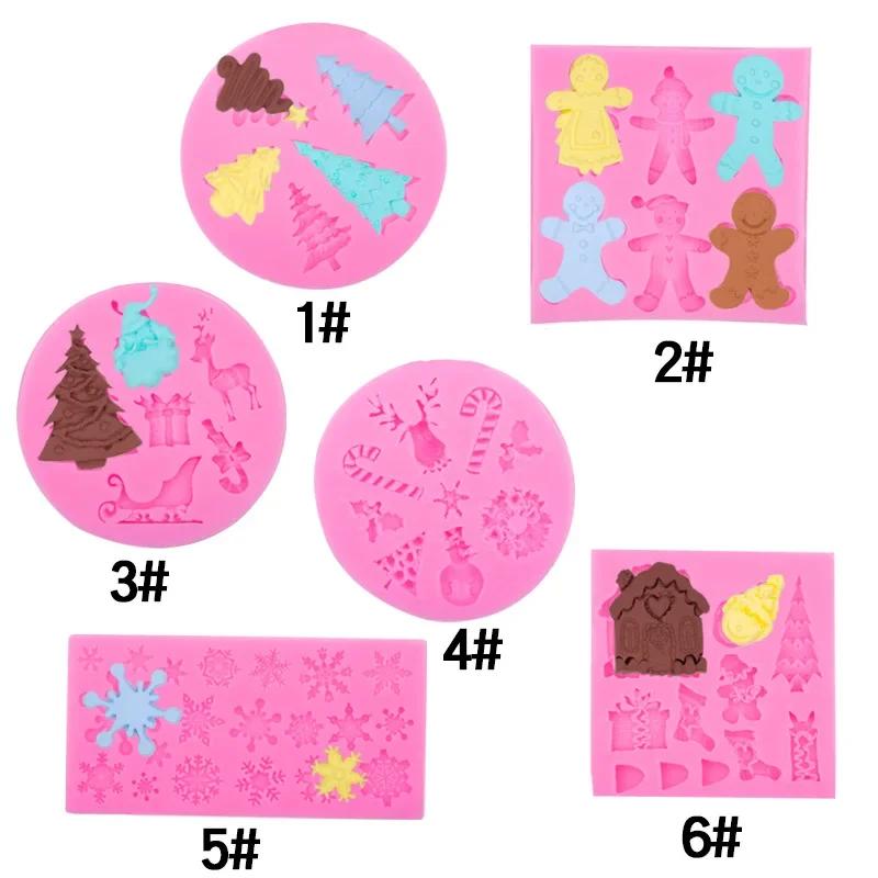 6pcs Christmas Mold Silicone Diy Christmas Tree Decoration Silicone Epoxy Resin Mold Cake Accessories Diy Baking Tools