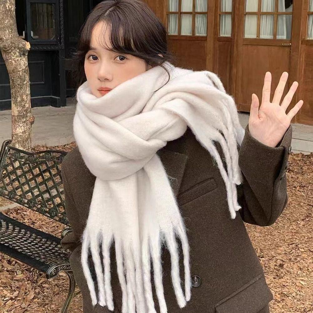 Windproof Long Wool Tassel Scarf Macaron Solid Color Winter Cashmere Shawl Warm Neck Scarf Girls