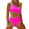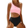 Women's Fashion Color Block One-Shoulder One-Piece Swimsuit