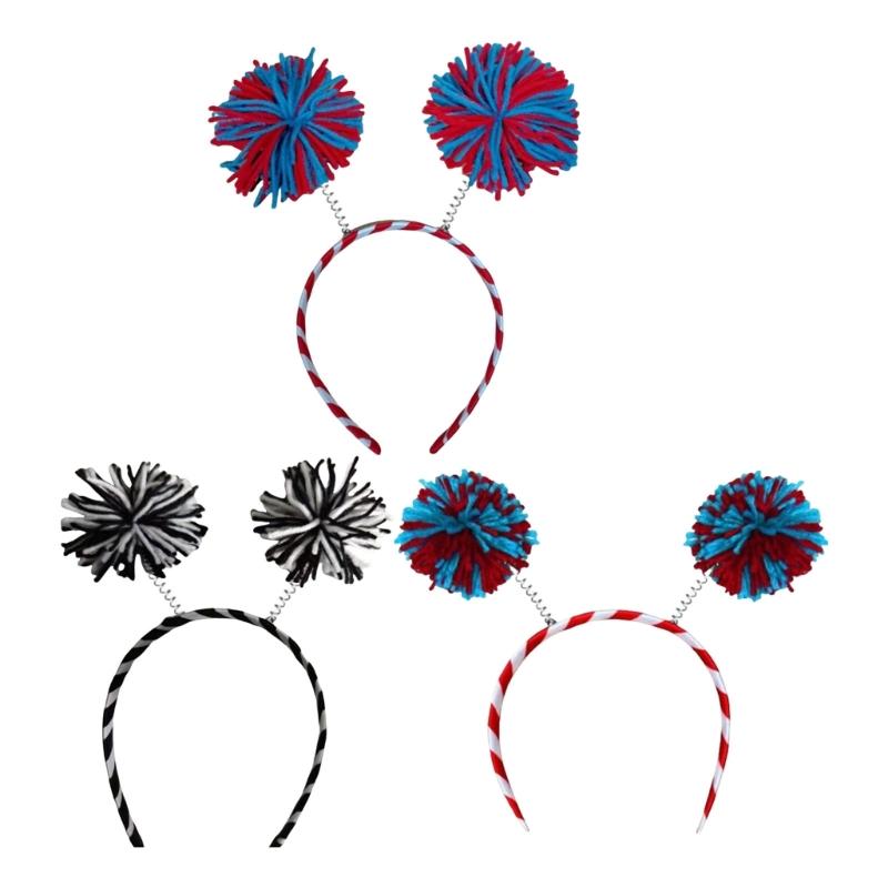 Furry Yarns Hairhoop for Family Gathering 3 Color Pompoms Headpiece Costume Hair Decoration for Casual and Formal Event