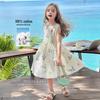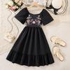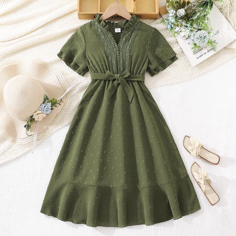 Girls' Casual Dress for Summer - Elegant Short-sleeved Lace V-neck Dress for Children