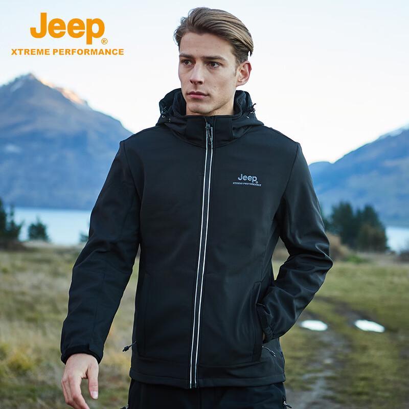 This Jeep men's soft shell jacket is designed for outdoor sports, offering waterproof, warm, breathable, and windproof protection. Made from durable polyester, it's suitable for autumn and winter activities.
