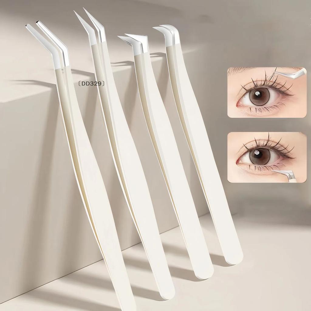 פינצטה לריסים קליפס להארכה נירוסטה אנטי סטטית סופר קשה פינצטה בעלת דיוק גבוה עם קצוות סיבים כלי איפור
