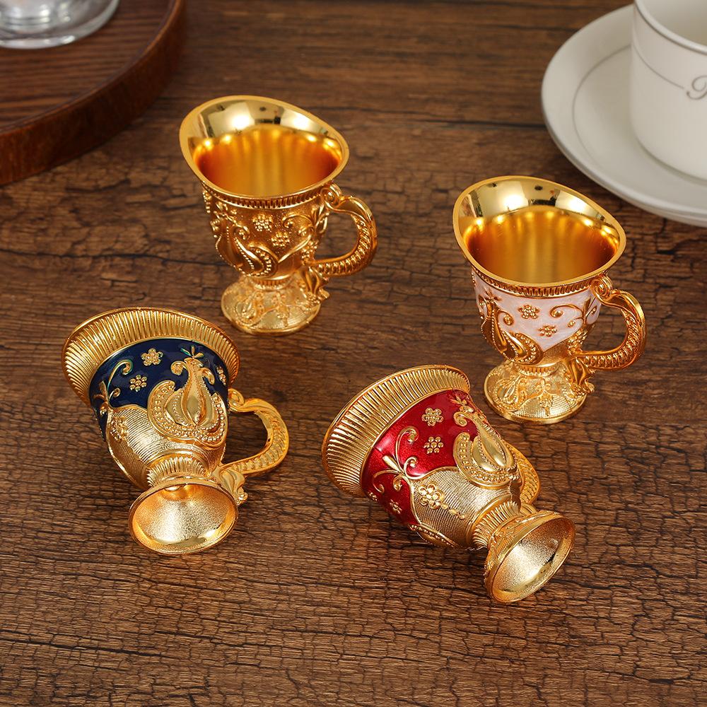Golden handle cup, one cup Baijiu cup with handle, palace style, high-end restaurant wine cabinet decoration ornament